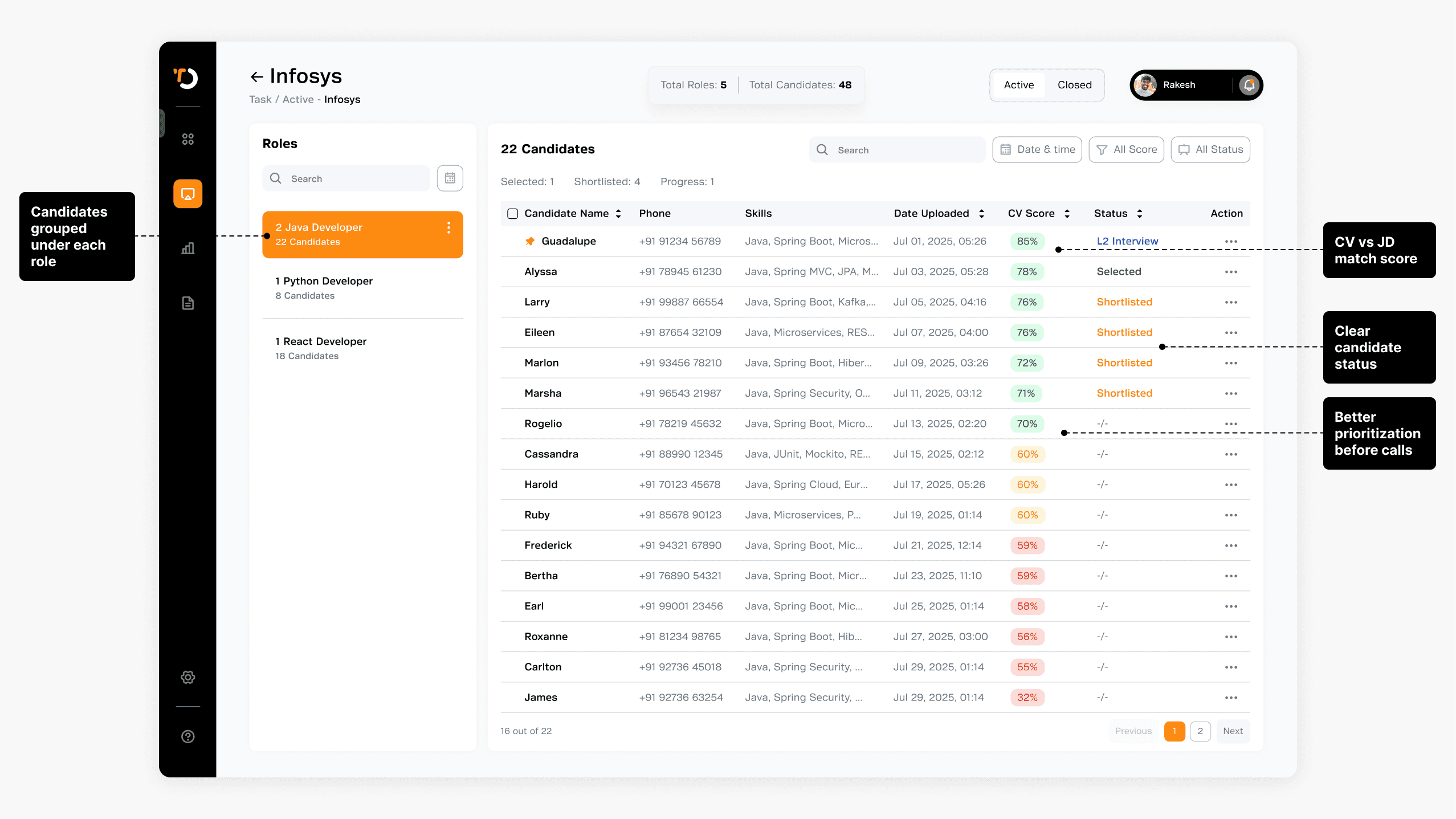 Earlier, updating status or switching candidates required opening profiles and going back.