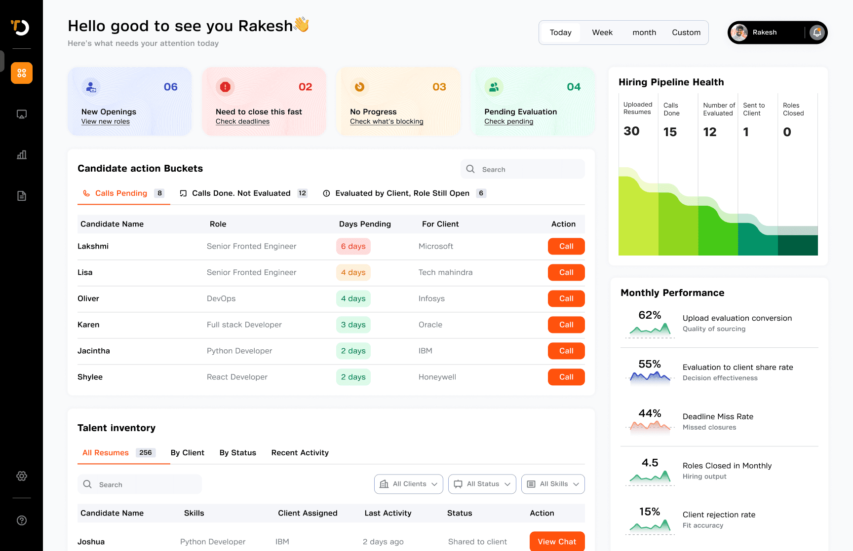 Client rejection rates also dropped from 65% to 35%, showing better candidate–role alignment and stronger screening quality.