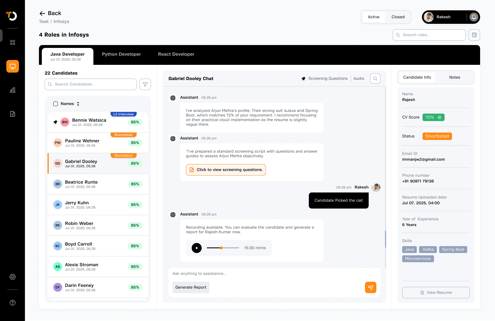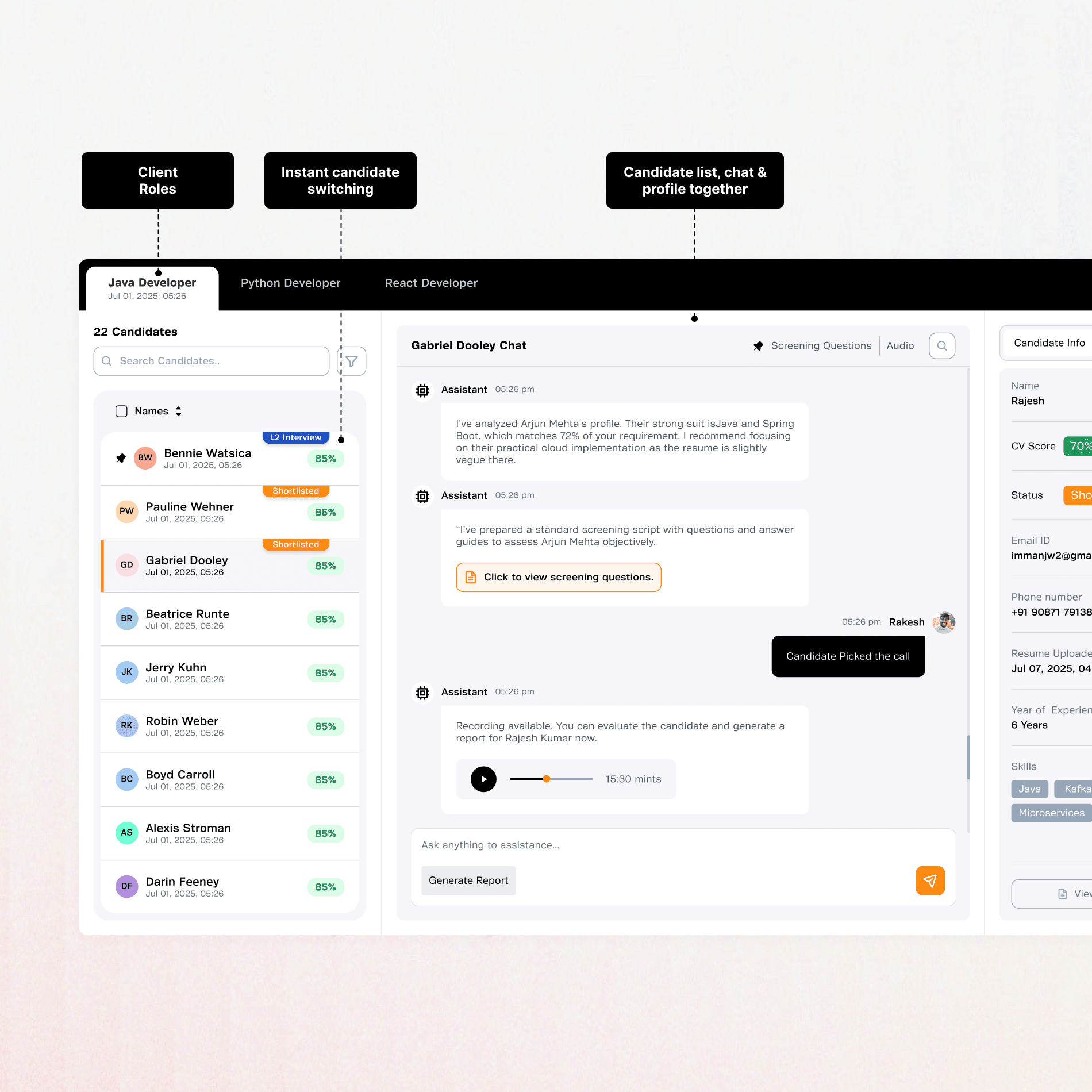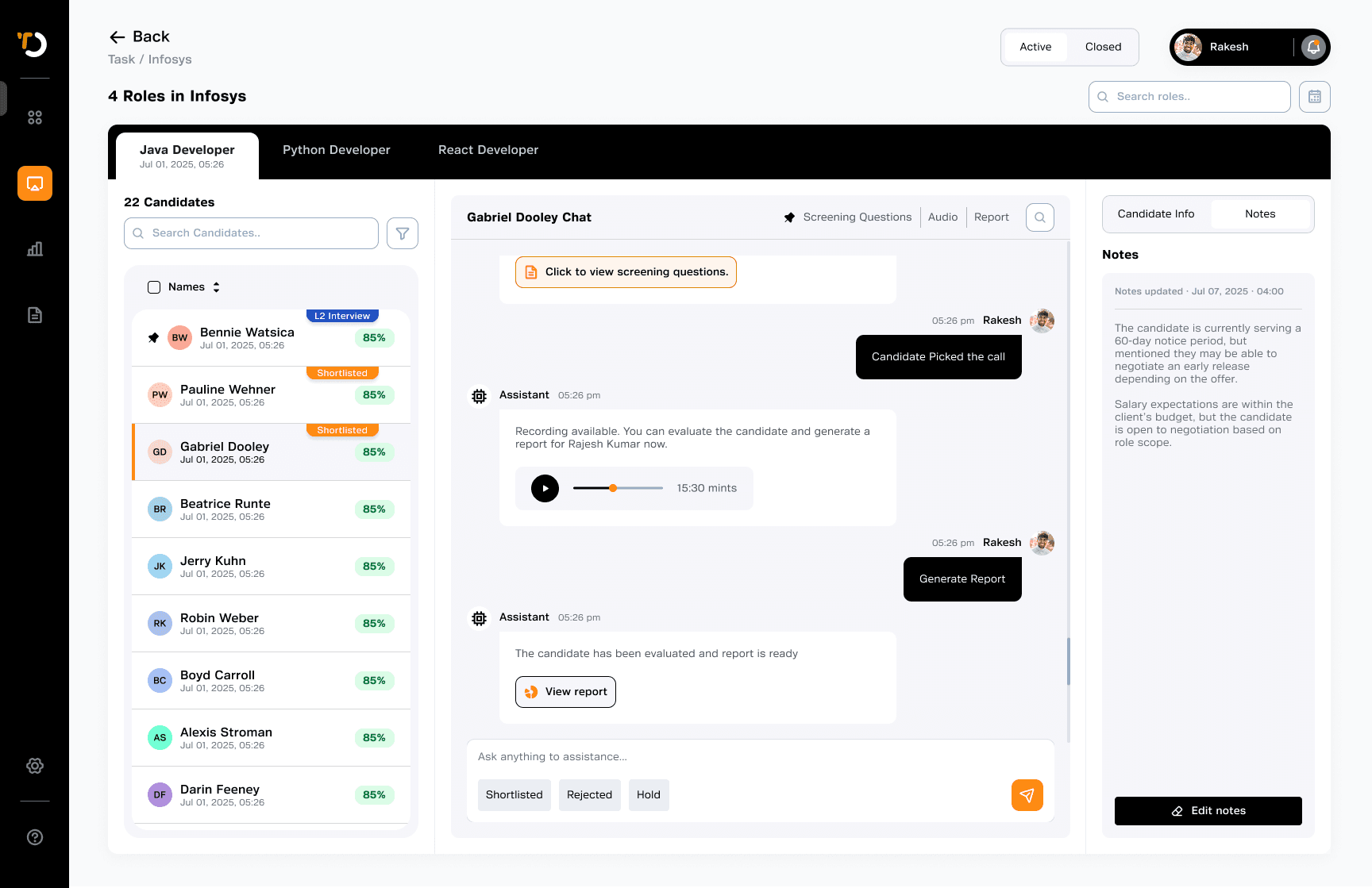 Specially the AI-generated reports gave them more confidence than their usual notes now they felt they can send to client with evidence and updating candidate status inside the flow felt more structured than their existing tools.